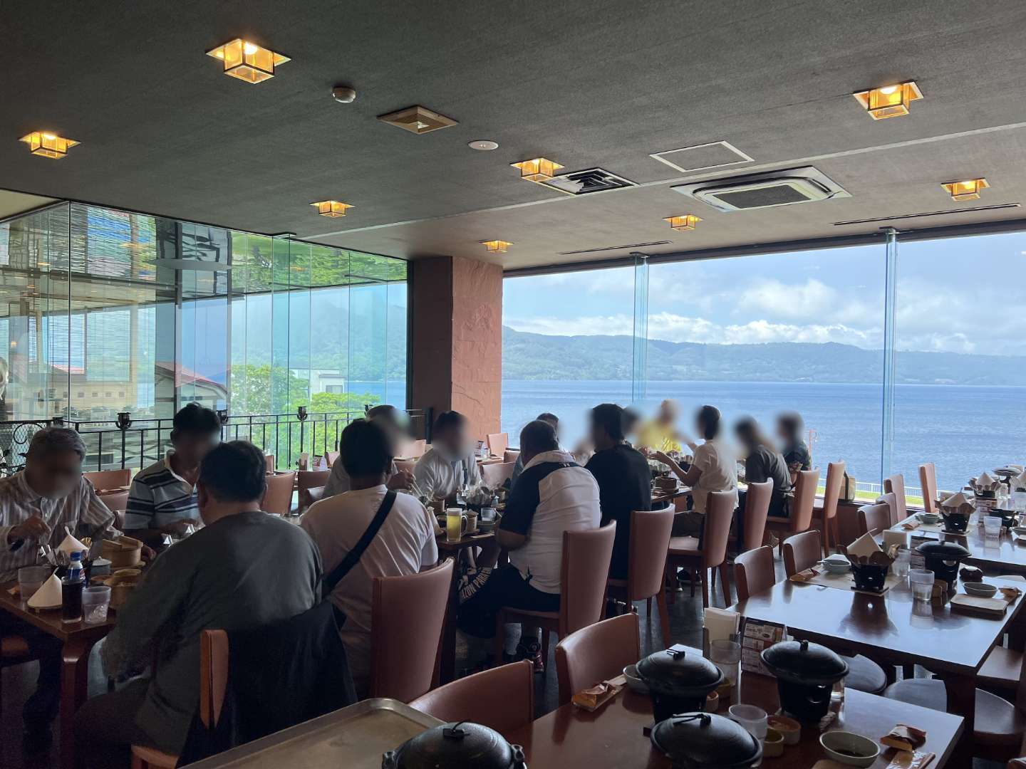 次に向かったのは洞爺湖!遊覧船で湖畔をクルージング体験し、その後は湖畔を眺めながらお昼ごはんをいただきました。