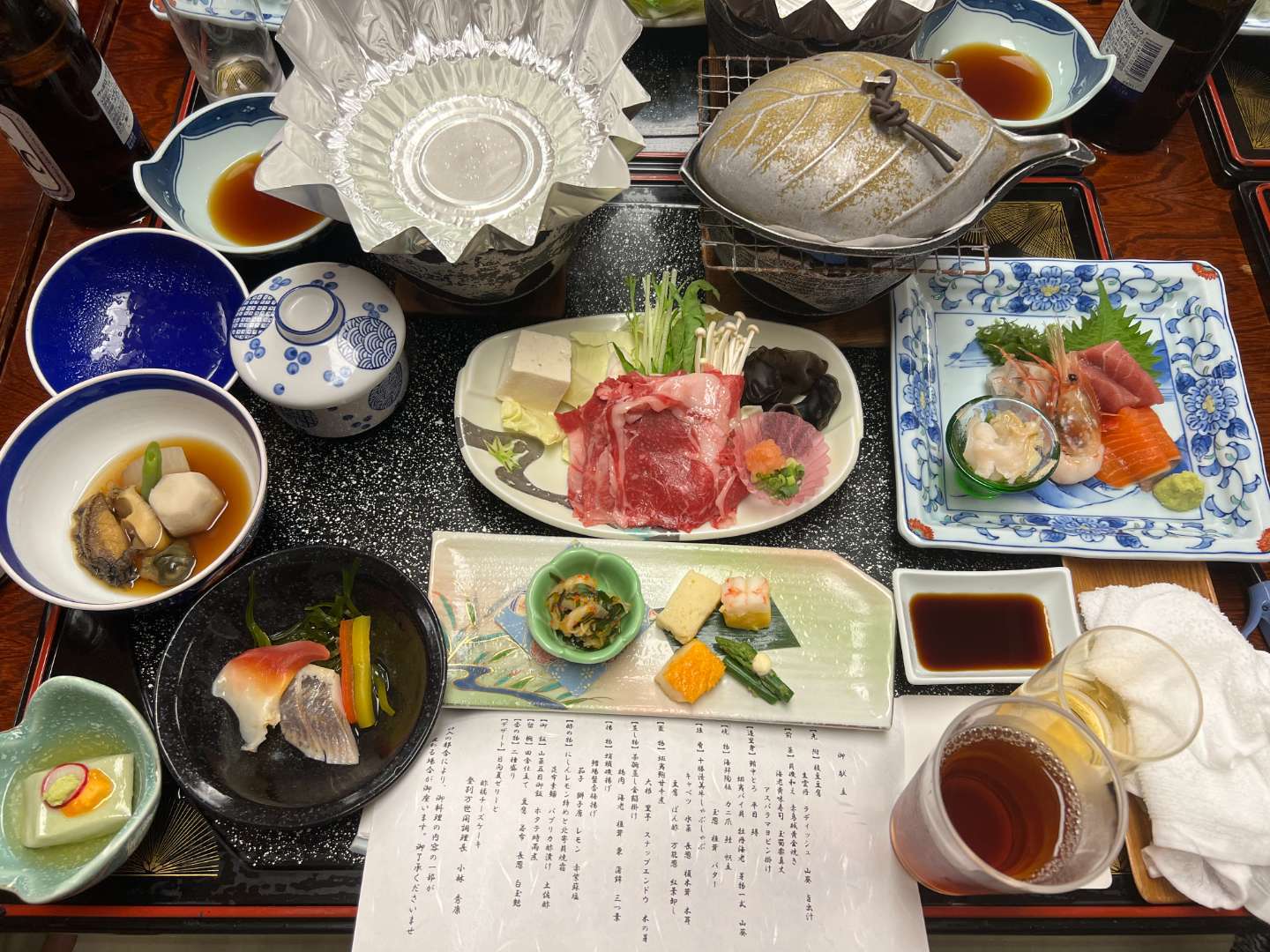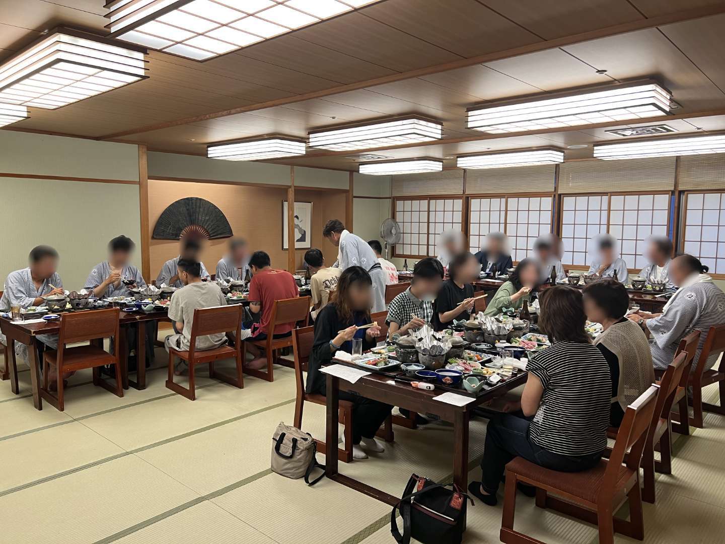 宿泊先の登別万世閣で宴会場で夕食と温泉にゆっくり浸かり日頃の疲れが癒されました。